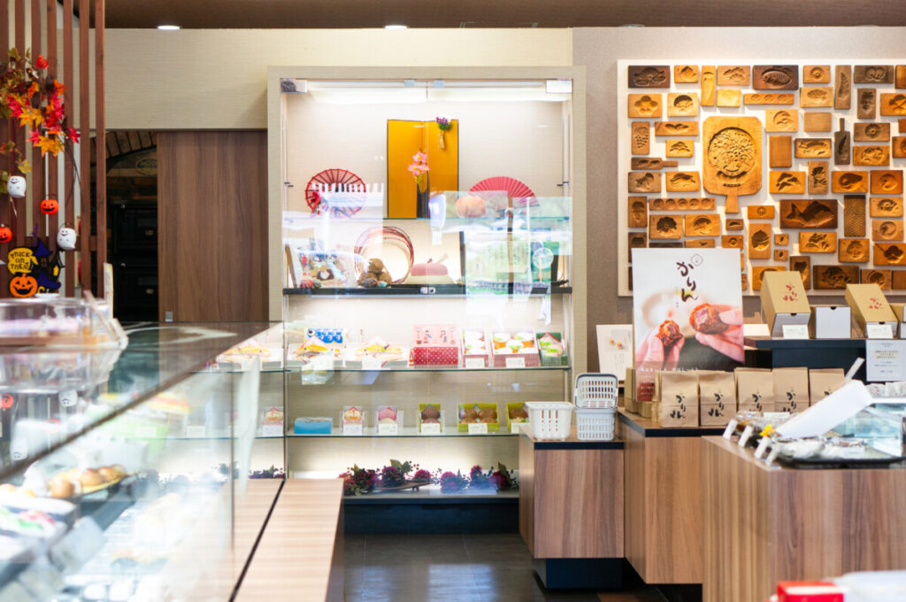 ショーケースには季節の練り切りや尾崎カヌレが並ぶという、老舗和菓子店でありながら、洋菓子店やフランス・パリで修行をしていた尾﨑さんだからこそのラインナップとなっています。