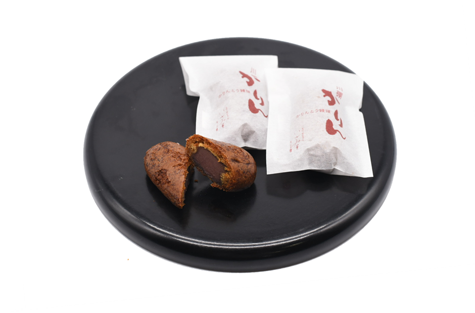 川棚かりんは、黒糖を練り込んだ生地に、自家製の餡子を包み、外はカリッと、中はしっとり。